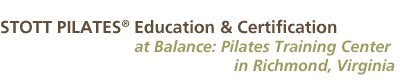 Space is limited! To register or for costs and additional information regarding these courses, call Carlyn Phillips at 804 340 1203 or email certification@balance-pilates.com. Mail your application form to Balance Pilates Training Center, 2123 Staples Mill Road, Richmond, Virigina, 23230.