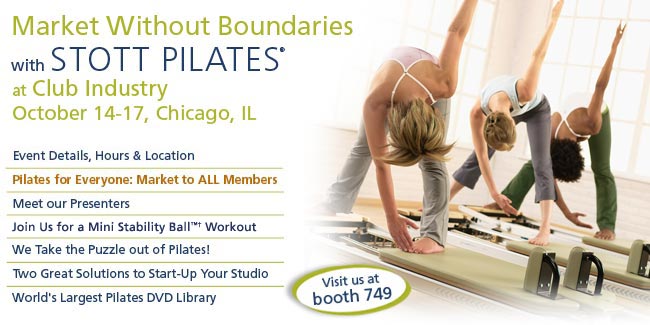 Maximize your earning potential and increase client retention by adding fresh new programming options by STOTT PILATES. Become one of the most sought‑after instructors in the industry with STOTT PILATES’ diverse collection encompassing everything from the fundamentals to post-rehab, sport-conditioning, prenatal, and lifestage‑specific programming. View new DVDs and exclusive clips. Save 25% on Demo Equipment at Club Industry
